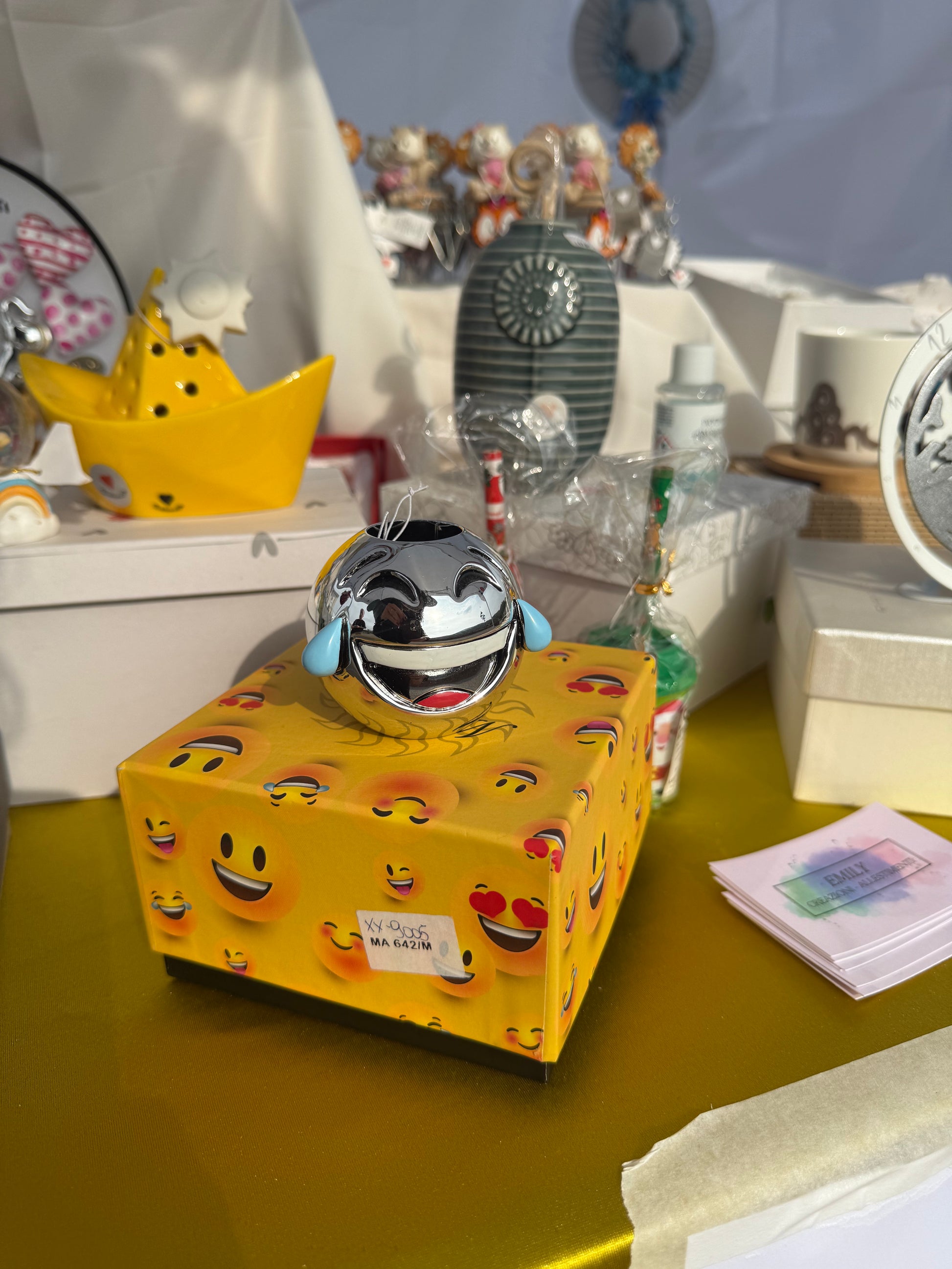Decorazione da appoggio in argento raffigurante la celebre emoji che ride con le lacrime. Un pezzo dall’effetto brillante e contemporaneo, perfetto per aggiungere un tocco ironico e di carattere a scrivanie, camerette, living o come idea regalo originale.
