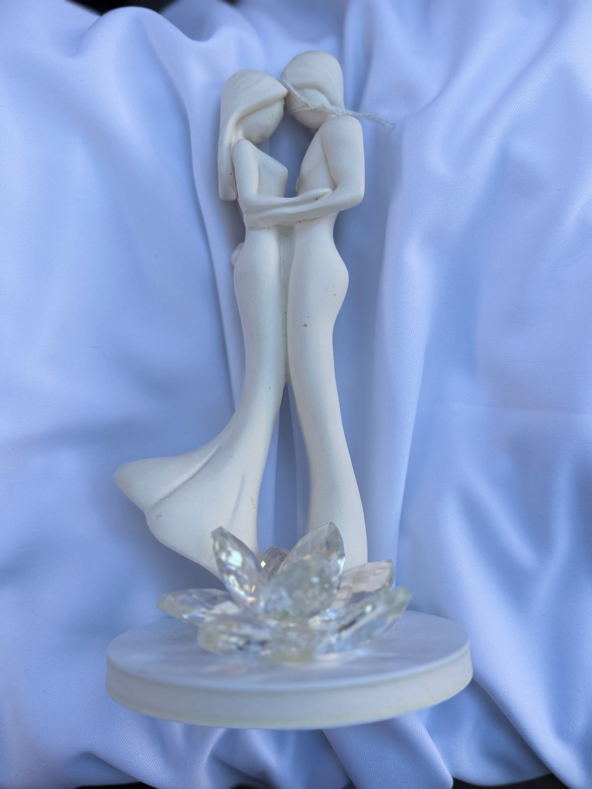 Elegante statuina raffigurante una coppia di sposi/innamorati abbracciati, dal design moderno e minimal.